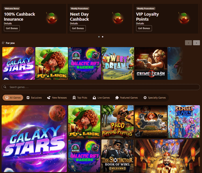 The fact that you can claim a 75 free spins welcome package with no deposit required is fantastic. Add in the 100% cashback insurance option, wager-free comp points, a brilliant selection of Betsoft and Rival games, and lightning-fast crypto payouts, and you have a recipe for a highly successful casino experience.